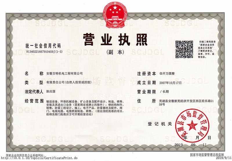 安徽百特機電工程有限公司是一家集環保和輸送一體的生產型企業,在輸送行業通過自主設計的下行膠帶輸送機利用勢能差,進行轉化為電能并入電網,是潔凈能源的綜合利用的科技型企業;同時在垃圾處理行業上的廣泛利用對處理混合收集的原生活垃圾組進行初步處理和物理性分離。同時將原生生活垃圾組分中的無機物(磚瓦石塊,砂土、玻璃等)進行分離。目前公司正朝著現代物流無人分揀輸送包括顏色、重量 還有二維碼等等的分揀技術的發展,同時對檢索機器人智能制造的設計與應用已經開展生產,公司現有從設計到工藝編制及管理全過程微機進行,快速、準確、高效,所有設計始終堅持產品開發的3E性:高效節能性(Efficent) 、經濟性(Economical) 、環保性(Environmentai)。并與行業科研機構、國外技術領先企業、業內技術權威人士保持良好的合作與聯系。吸收、借鑒國外先進技術,致力于不斷提升產品3E與制造技術,同時不斷地開拓新技術產品。產品已銷售至全國30多個省、市、自治區,部分產品出口中亞、東南亞、南亞、非洲和南美等二十多個國家和地區,產品深受國內外用戶信賴。持續的質量改進是百特永恒的主題,高質量的輸送產品為您排憂解難,全方位的技術服務使您得心應手,我們堅持以上乘的品質、優質的服務回饋新老客戶。百特人將一如既往地發揚“求真務實、 銳意進取、不斷創新”的企業精神,希望通過我們的努力,為我國輸送機械行業的可持續發展做出更大的貢獻!最后用一句公司的理念來概括:沒有最好,只有更好There is no best., only better!